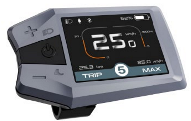 Kompaktní ovladač s barevným LCD displejem KD686 zobrazuje všechny potřebné funkce a jízdní parametry :