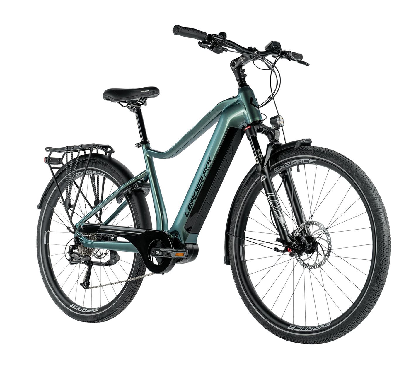 Elegantní pánské trekingové elektrokolo Leader Fox DENVER 2024 s hliníkovým rámem, zcela integrovanou baterií do rámu kola a s velmi příjemným moderním designem.